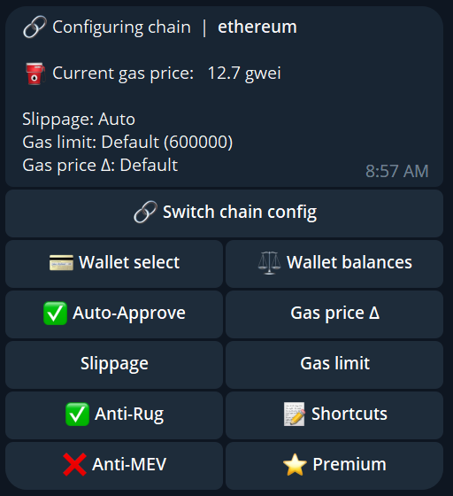 Toggle this button to enable or disable auto approval of tokens after buying, only if they're not already approved for the wallet that bought.\